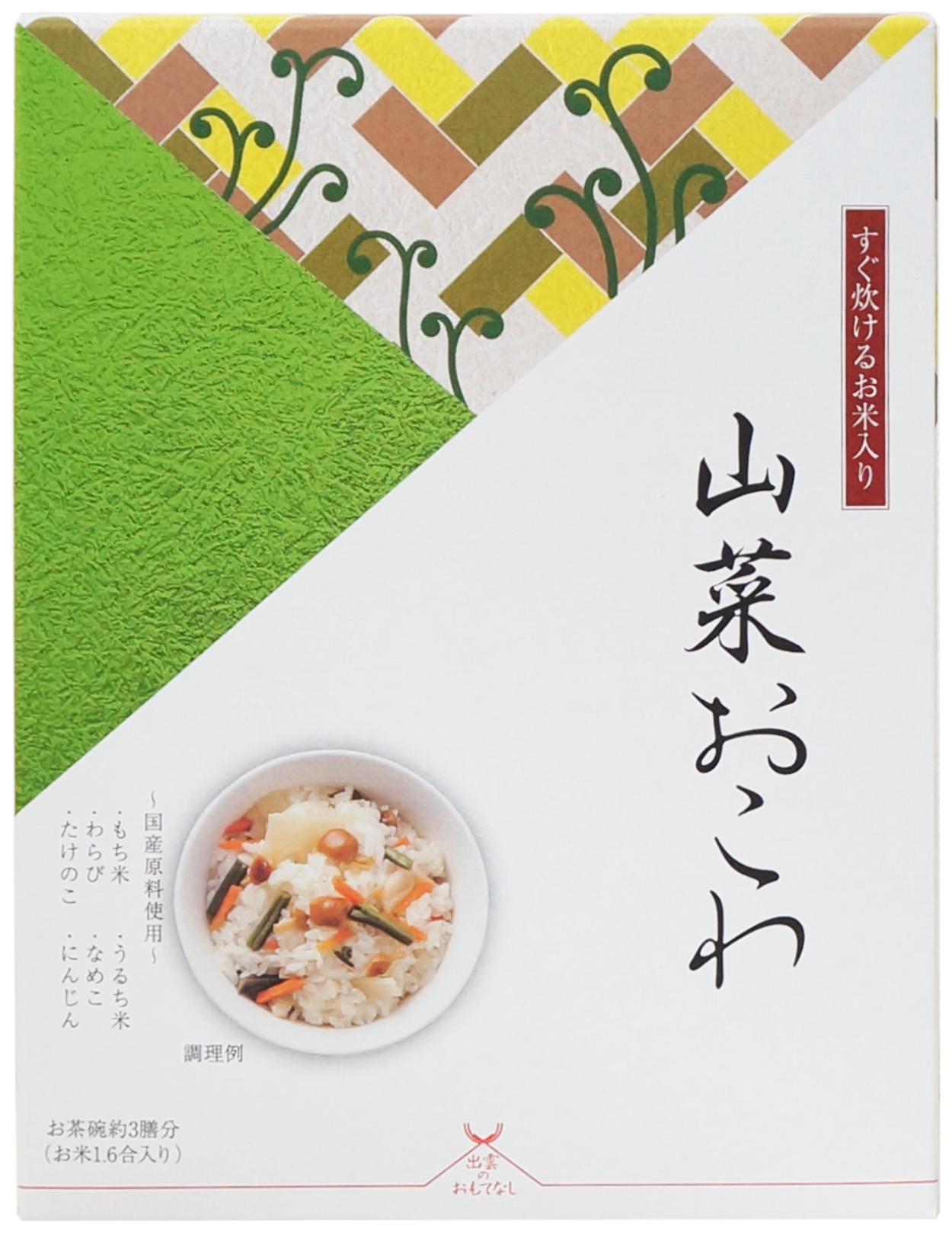 “Sansai Okowa E(mountain vegetable sticky rice) made with quick-cooking rice.